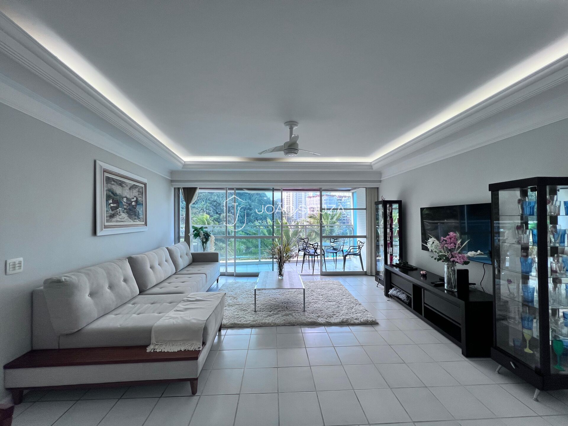 • Sala 2 ambientes integrada à sacada com vista para o mar