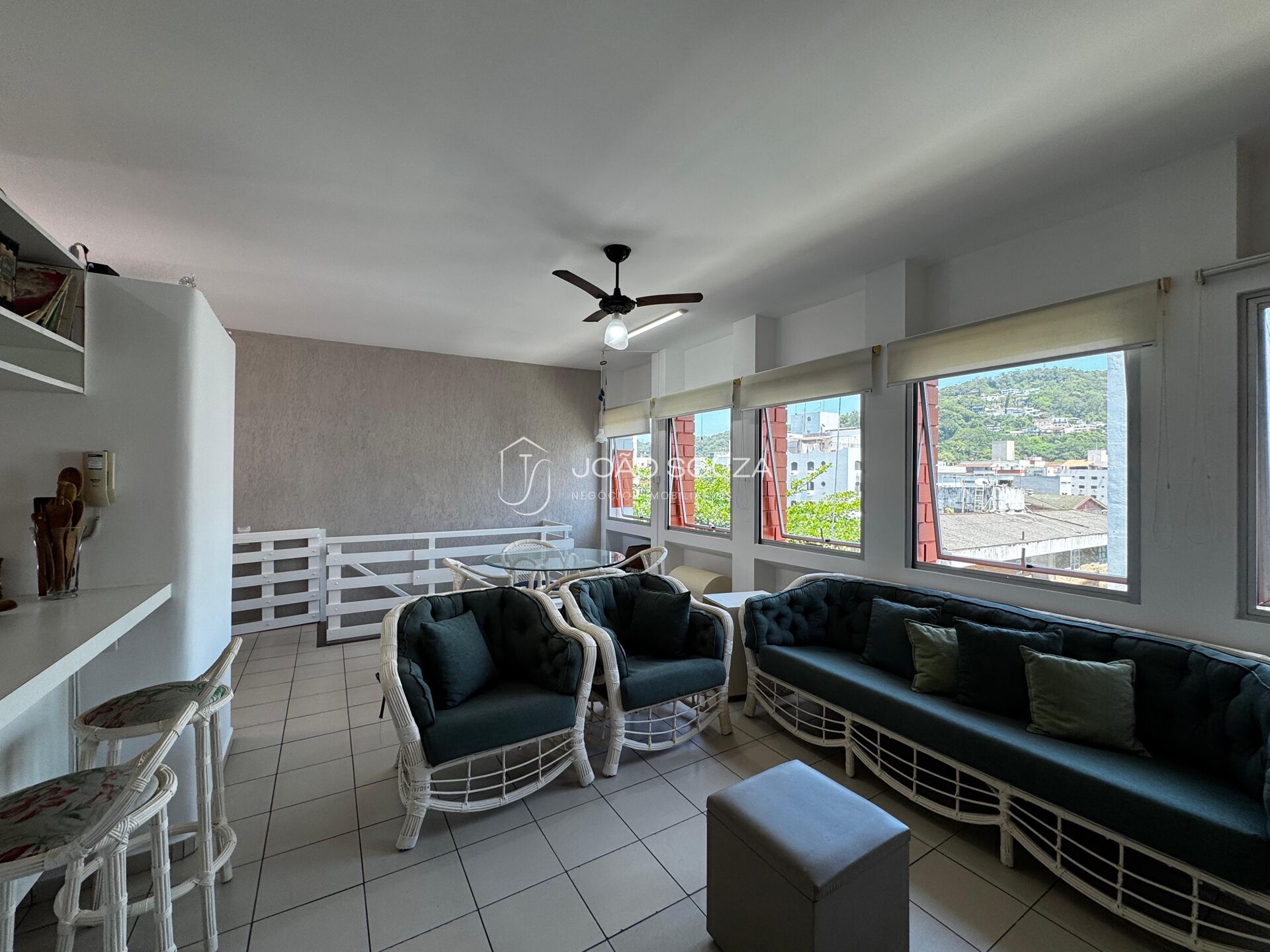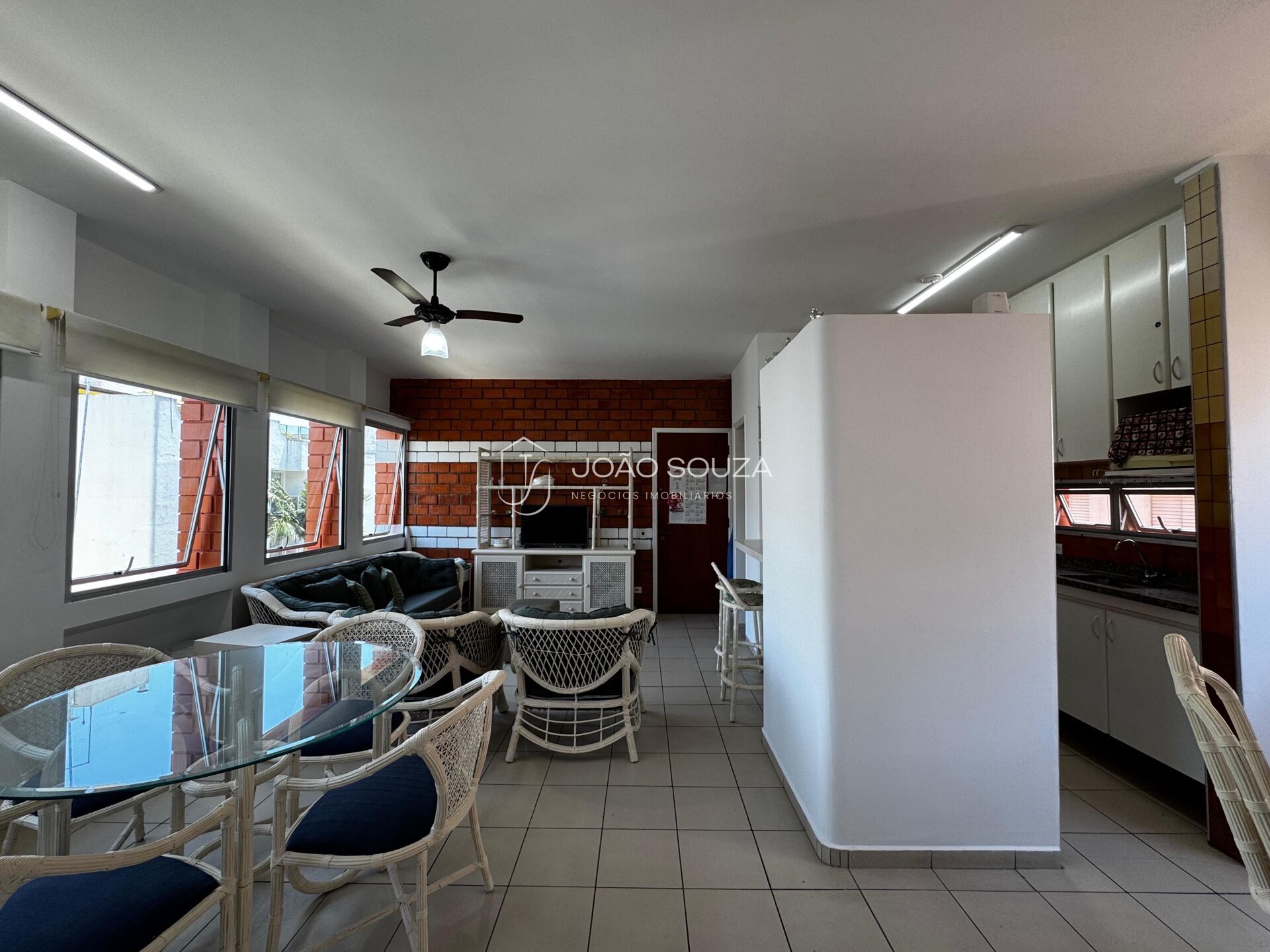 • Sala para dois ambientes integrada à cozinha americana