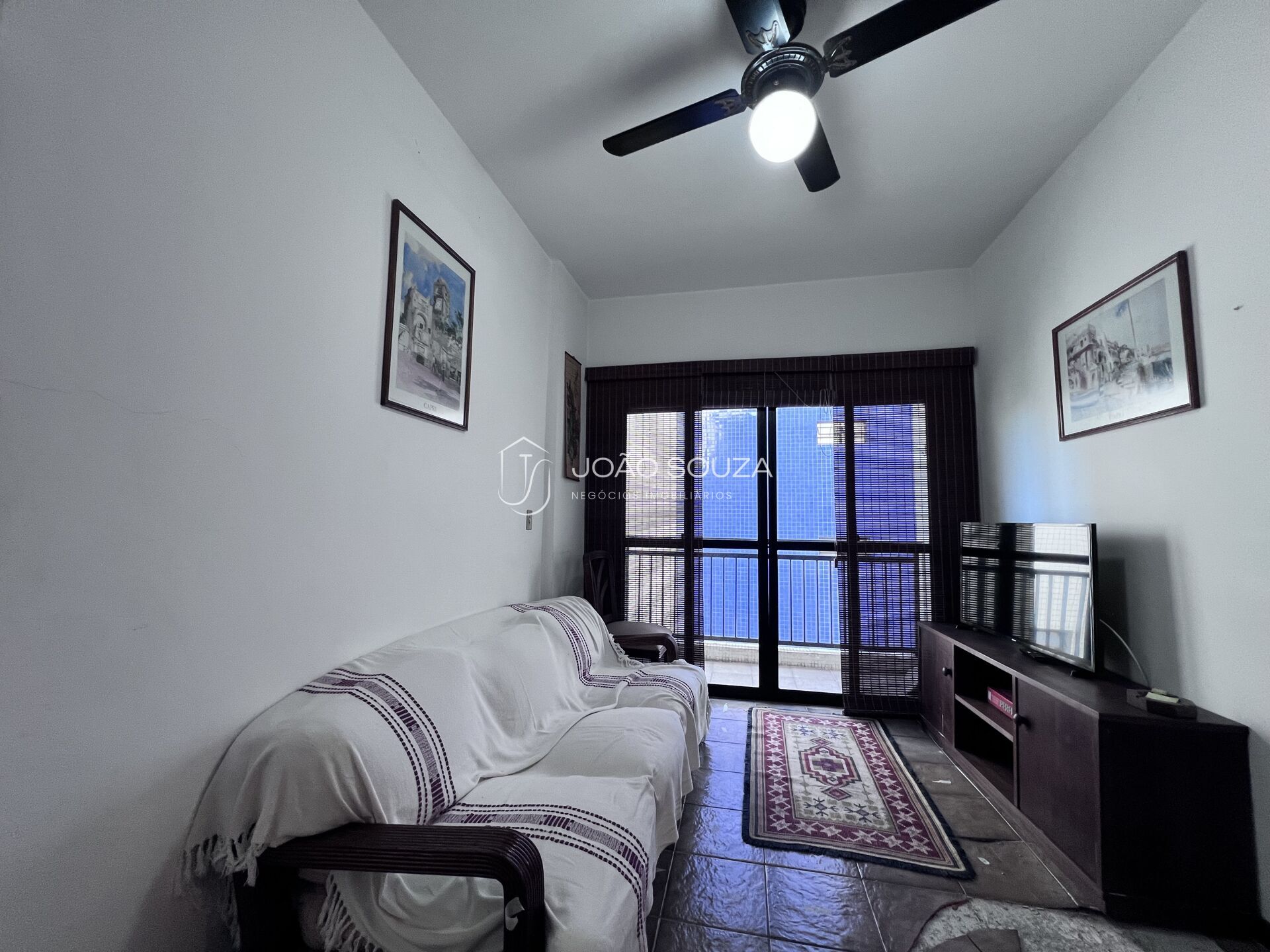 Sala para 2 ambientes com ventilador e sacada